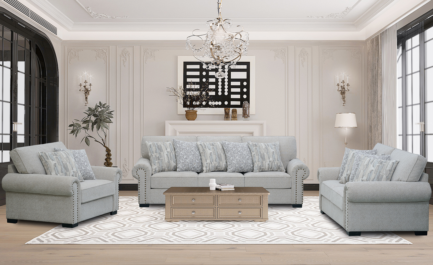 GRECIA 7 SEATER FABRIC SOFA-LIGHT GREY