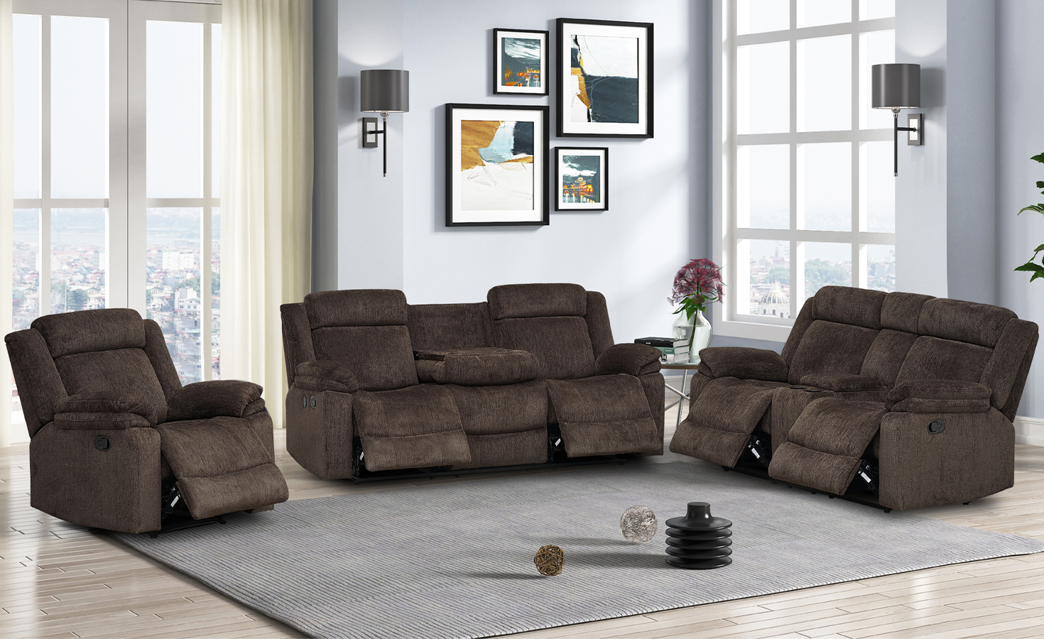 HILTON 6 SEATER RECLINER SOFA SET- GREY/BROWN