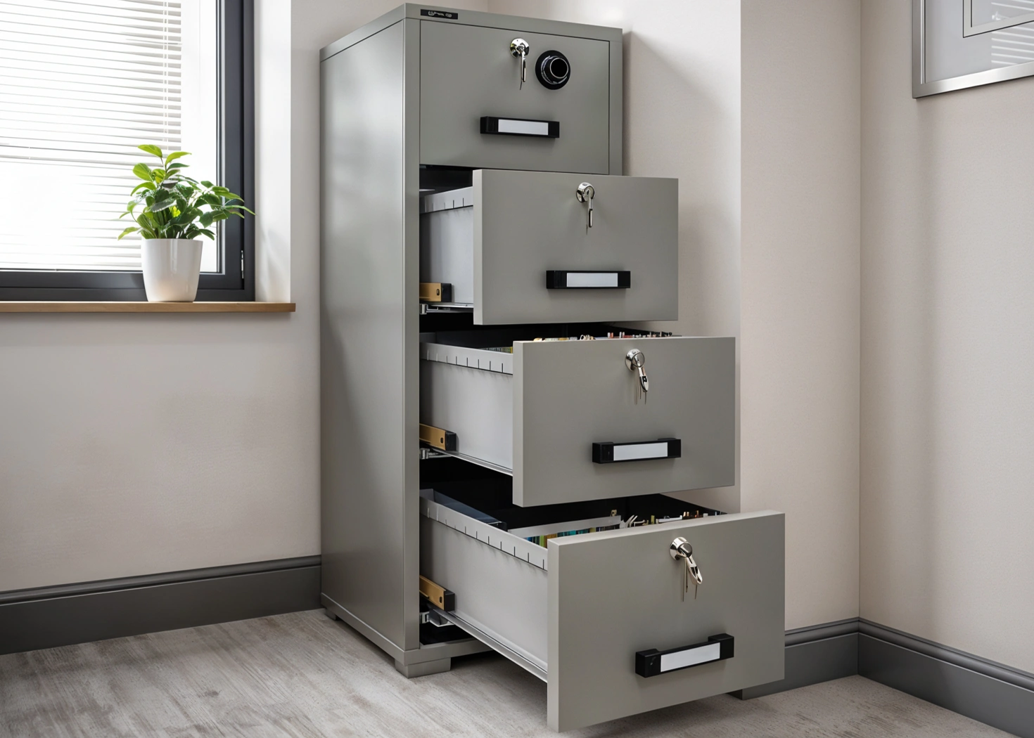 Each drawer compartment is separated to provided individual insulation against fire which reduces the risk of other drawer caught in fire.