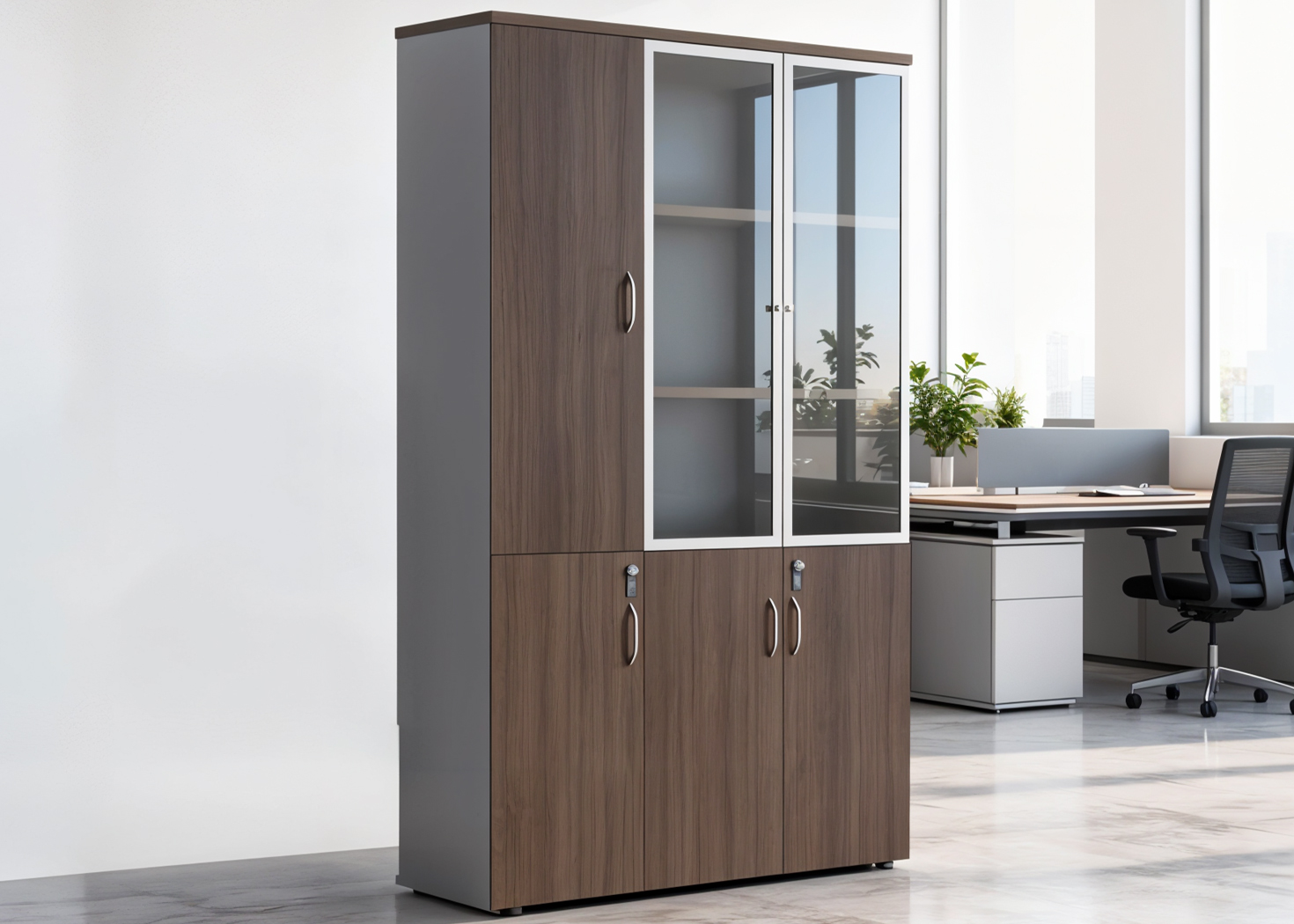 3 DOOR FILING CABINET- PARI WALNUT/ADVANCED GREY (30BZJ009)