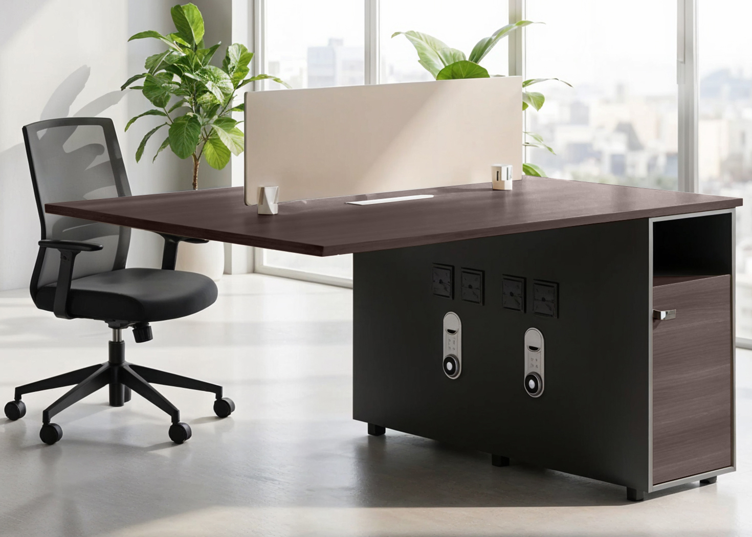 2 SEATER WORKSTATION EXTENSION UNIT- PARI WALNUT/ADVANCED GREY (19FHS207)